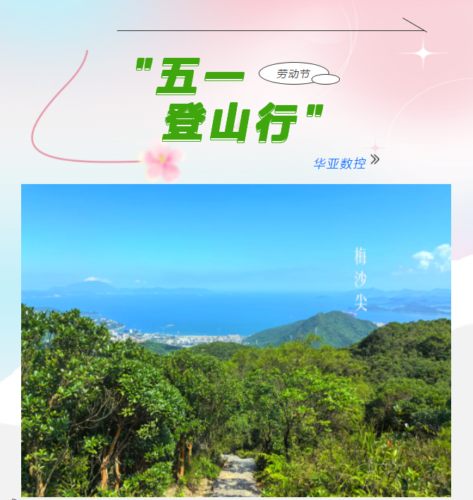 五月,是揮灑汗水的季節(jié),更是致敬奮斗者的時(shí)節(jié)。在五一勞動(dòng)節(jié)來臨之際,華亞數(shù)控積極踐行企業(yè)文化,工會(huì)組織假日期間未回家的員工開展了一場別開生面的登山活動(dòng),“茶溪谷-梅沙尖-大華興寺”徒步之旅。以一場充滿激情與挑戰(zhàn)的戶外之旅,展現(xiàn)團(tuán)隊(duì)風(fēng)采,傳承勞動(dòng)精神。