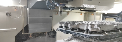 ◆ 機床功能高度自動化配置雙主軸和液壓回轉(zhuǎn)臺,實現(xiàn)五軸控制,一次裝夾即可完成五面加工。